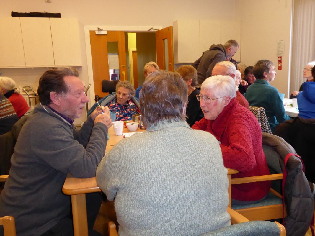 After a chat and a cuppa for the first half hour we arrange an activity or talk – the most popular are Quizzes and Bingo, Seated Exercise with Jean to beautiful music, Arts and Crafts with Lesley, Music and singing with Bob Payne or Strumash Ukelele Orchestra, or impromptu with Lyndal, Gill and Phil. On the more serious side we have had informative talks on a wide range of subjects – from Maree Todd MSP, Scottish Minister for Social Care, Mental Wellbeing and Sport, to a Peeblean couple’s Personal Experiences of 12 Olympic Games: and talks on a wide range of subjects and topics relevant to people living with dementia from Borders Care and Repair to Benefit Entitlements, how the CAB can help, have you heard about Walk-It! walks, Reading is Caring, the latest Innerleithen and District Amateur Operatic Society’s Show…
